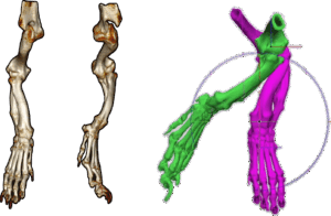 Figure 1. Normal vs. “C-shaped” forelimb. A normal, straight forelimb is contrasted with a bowed (“C-shaped”) limb to help you recognize abnormal alignment.