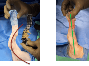 Figure 5. Intraoperative teaching image: curved to straight. Tasteful, non‑graphic views demonstrate the plan with a 3D‑printed model and the limb’s straight alignment after correction.