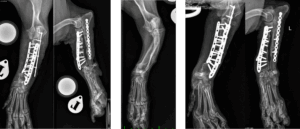 • How the bone is stabilized: typically with a small‑animal plate and screws. In some cases, the ulna is also addressed to relieve tethering and reduce the chance of the deformity recurring.