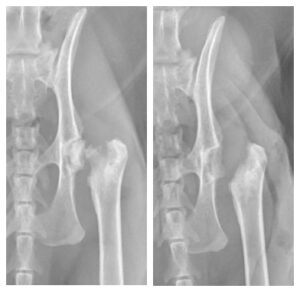In most cases, the FHO procedure is reported to have a good prognosis, however, this is somewhat variable and dependent upon physical rehabilitation for optimal outcomes to be achieved. It should be remembered that this “false joint” no longer has the same characteristics as a normal hip joint and therefore your pet will have a reduced range of motion of that hip. Additionally, a mild-to-moderate lameness may be associated with this abnormal anatomy and reduced muscling on the operated limb is not uncommon. Following this procedure, while unrestricted activity would not be allowed, after the first two weeks, pets undergoing FHO are typically permitted more activity during their recovery period when compared to other treatment options, as long as this is their only injury. Since no implants are used or left in the body with this technique, a true “failure” is not possible, however outcome can still be variable depending upon the range of motion, muscling and limb length achieved following the procedure.